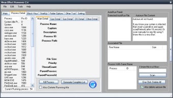 Un gestionnaire de tâches avancé fait aussi partie des outils inclus dans Virus Effect Remover. Une foule d'informations utiles est disponible pour chaque processus que vous pouvez terminer d'un simple clic. Vous pouvez aussi exporter une liste complète des processus en cours d'exécution au format texte.